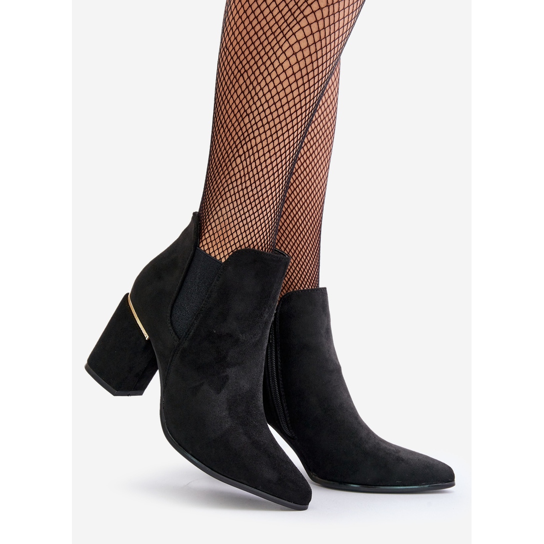 Det inre av stövlarna som är isolerade med en skorfilt kommer att säkerställa termisk komfort även på svalare dagar, och näsorna i spitzen optiskt smala benen, vilket ger dem elegans. Stövlarna räcker till vristen, vilket gör dem till det perfekta valet för höst- och vintersäsongen.