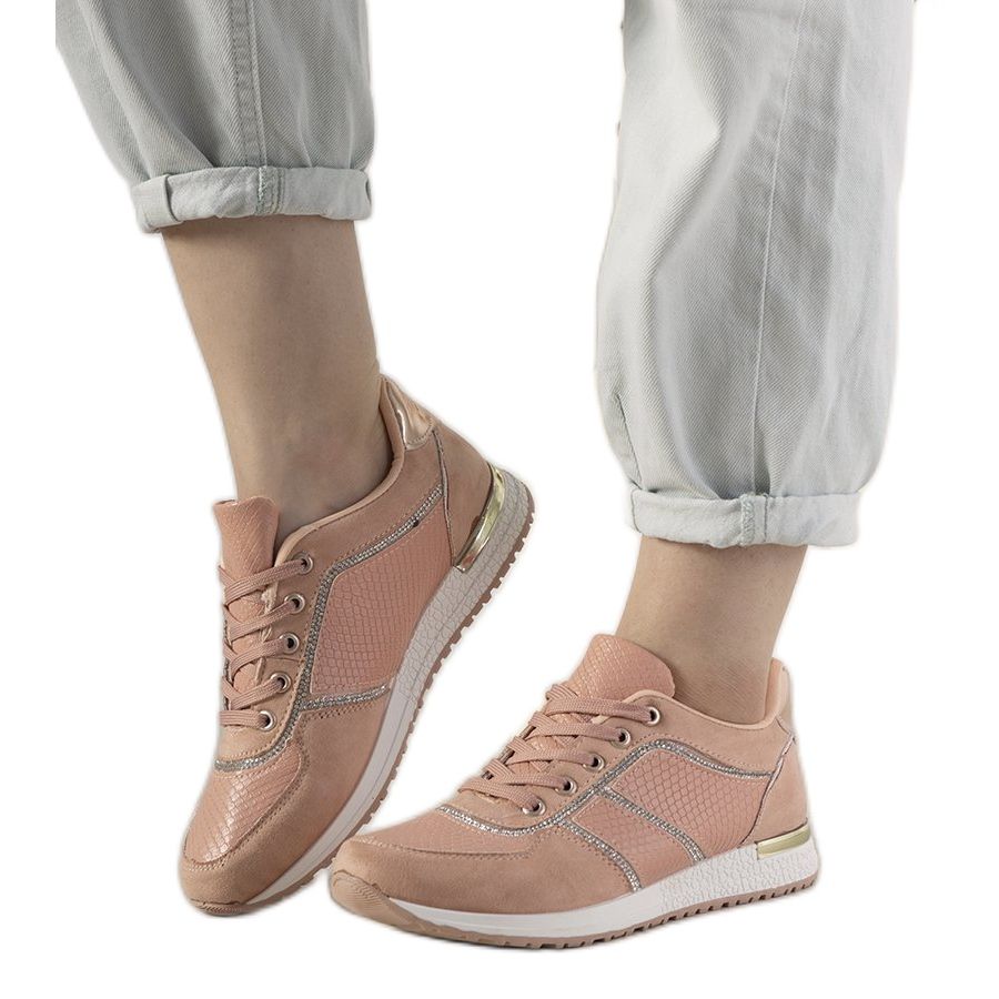 Detaljer: Ecoma rosa sneakers med ett ormskinnsmönster
