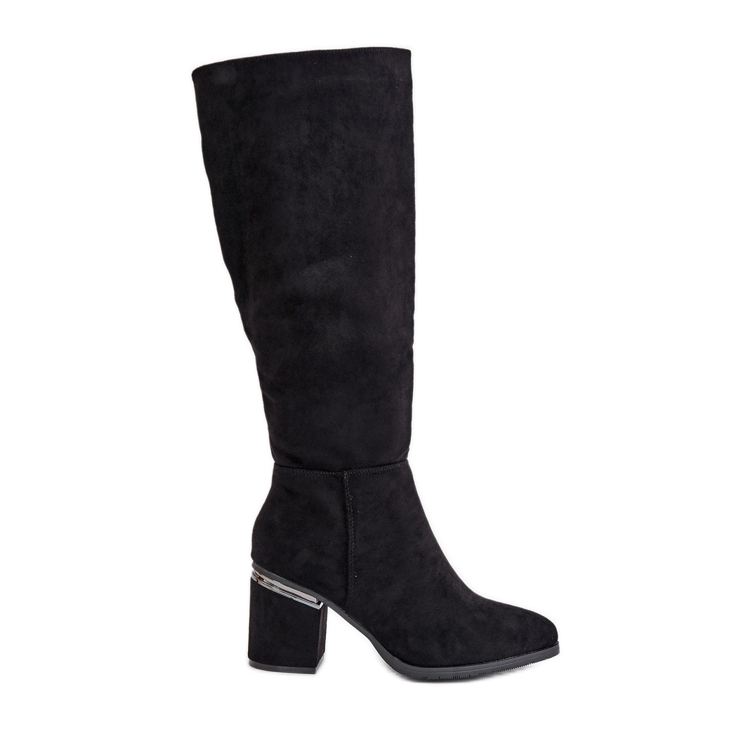 Eco Suede Women's Boots framför knäet på pelaren isolerade Vinceza 16473 i svart är ett bra förslag för alla kvinnor som vill kombinera elegans med komfort på svalare dagar. Dessa stövlar är gjorda av högkvalitativa Eco Suede och glädjer med sin stil och komfort att bära.