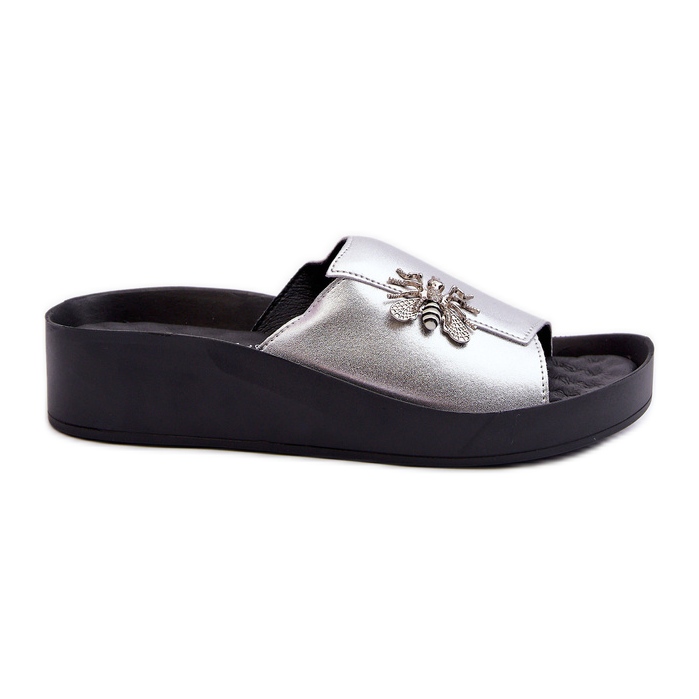 Detaljer: Eleganta damflip-flops med dekoration, naturligt läder S.Barski KV27-015 Silver silver-