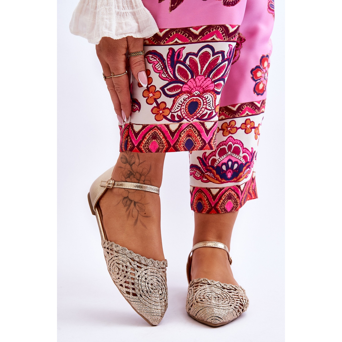 Sandalerna är gjorda av högkvalitativ plast och eko-läder, vilket säkerställer deras hållbarhet och eleganta utseende. Det genombrutna mönstret på framsidan ger lätthet och subtilitet, och den spetsiga tån gör denna modell i linje med nuvarande modetrender. Den en centimeter höga platta hälen gör sandalerna bekväma att bära, perfekta för långa promenader eller sommarutflykter.
