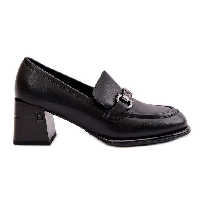 Denna modell kännetecknas av en rundad näsa, som betonar dess eleganta utseende. En ytterligare fördel är den dekorativa kedjan, som ger skorna en subtil, fashionabla accent. Svarta skor blandas bra med olika stiliseringar - från avslappnad till mer formell, tack vare vilka de är ett praktiskt element i varje garderob.