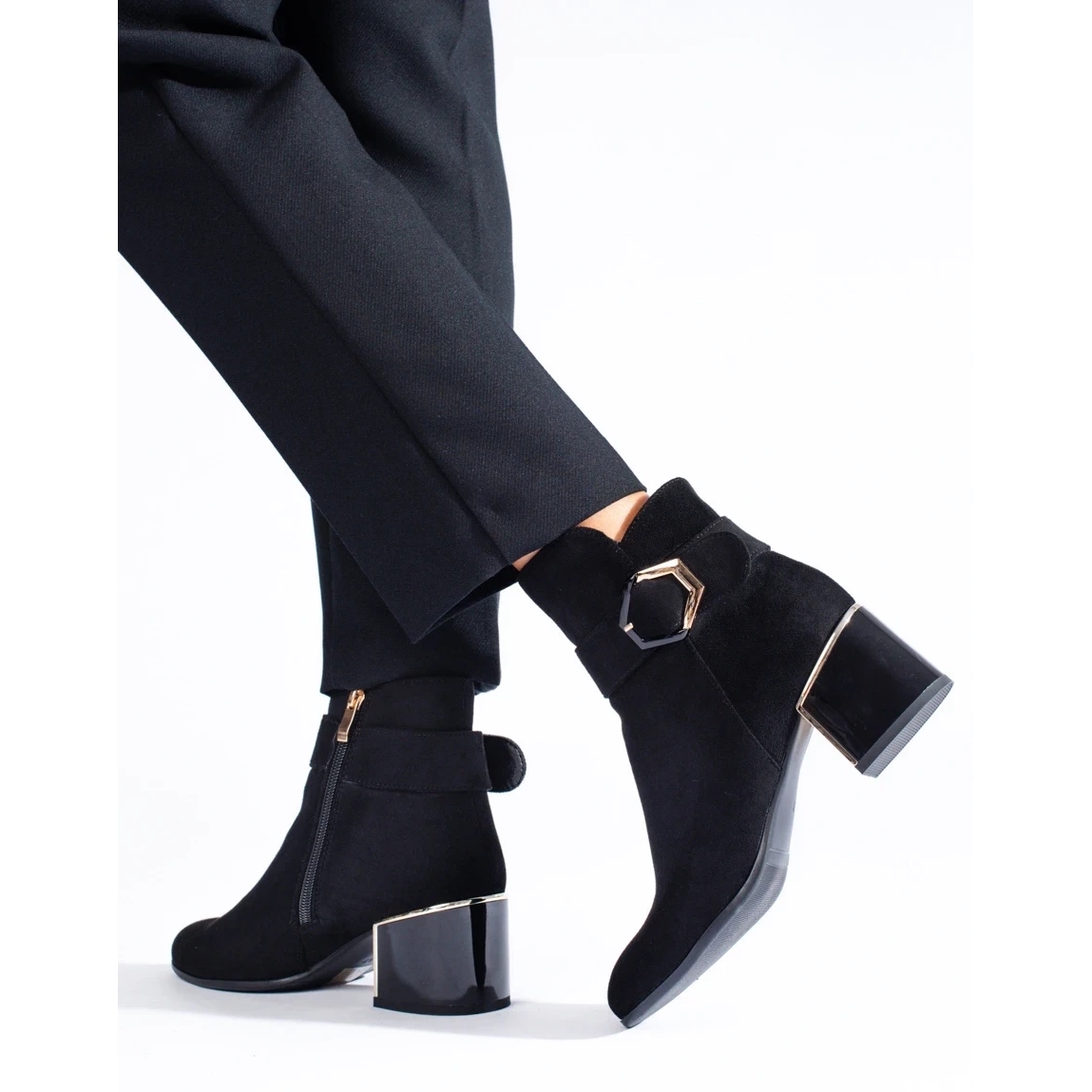 Eleganta kvinnorstövlar på en låg post - svart, ekologisk mocka