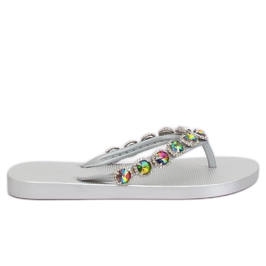 Information: Eleganta flip-flops med silver JH69 silverstenar grå