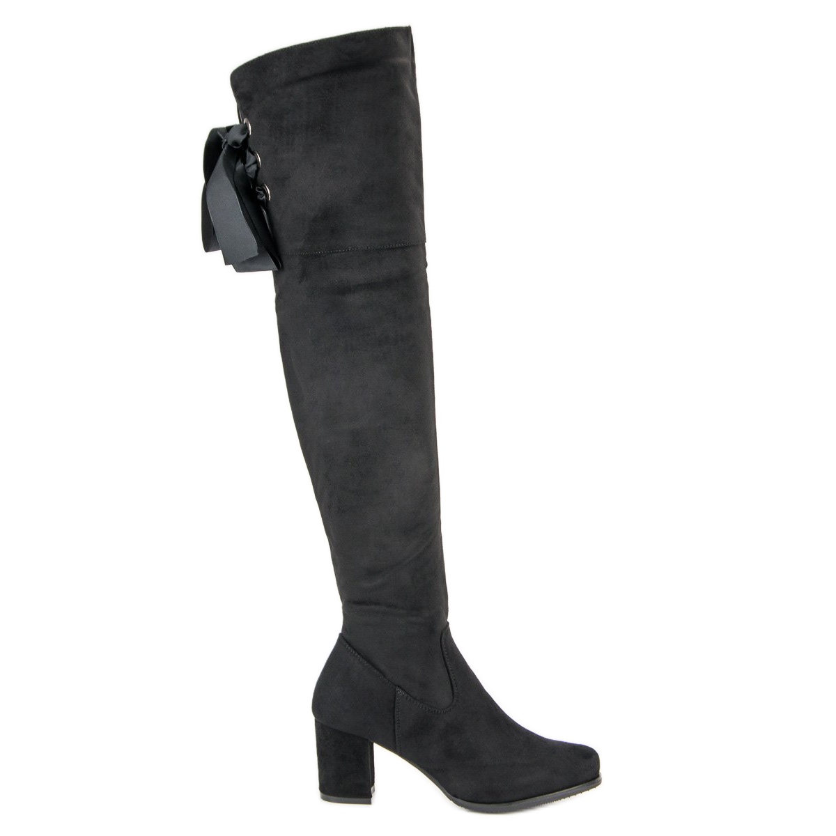 Detaljer: Queentina Eleganta högklackade lårhöga stövlar svart