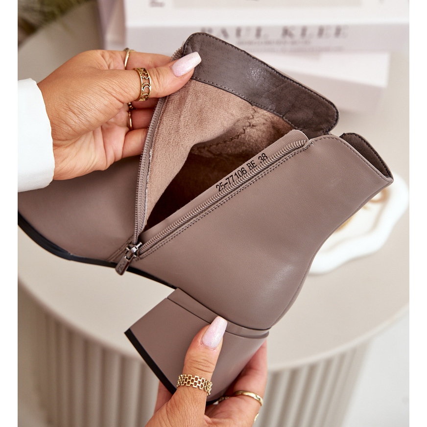 De ligger på en stabil häl i form av en 7 cm hög stolpe och ger en perfekt balans mellan elegans och bär komfort. Skorna är vadderad med en trevlig skorfilt, som garanterar värme även på de kallaste dagarna. Dragkedjan fästning på sidan gör att sätta och ta av skor är snabbt och problem -fritt.
