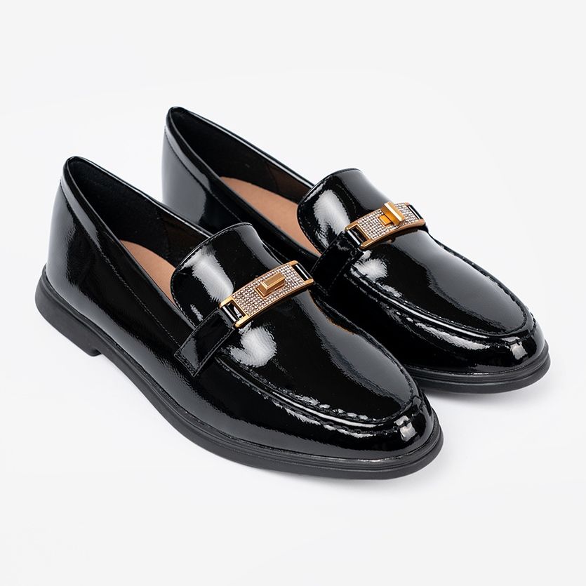 Detaljer: Shelvt Eleganta lackerade loafers med en gyllene dekoration svart