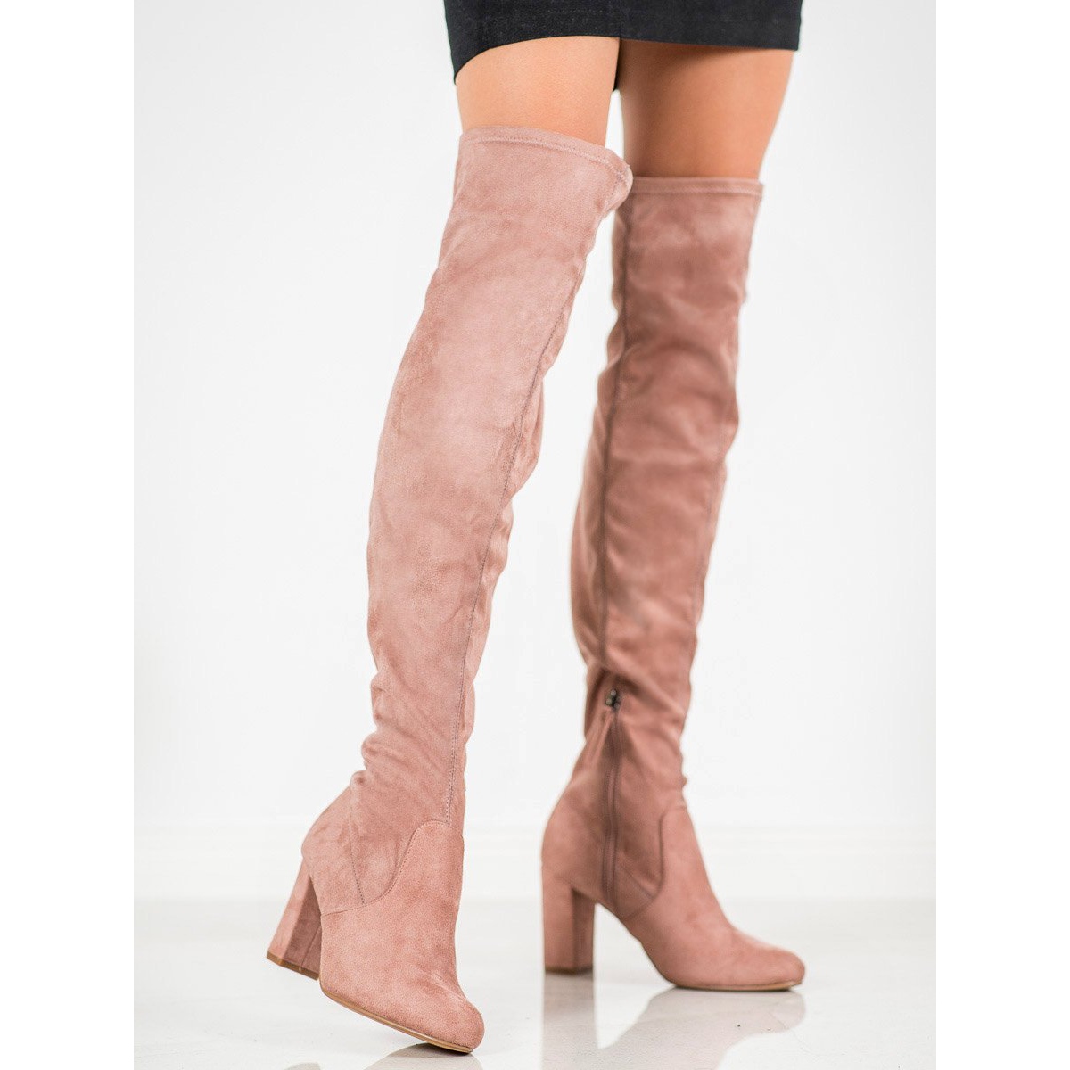Stövlarna är dekorerade med ovandelar som når över knät, vilket ger dem en raffinerad karaktär. En stabil 8 cm blockklack gör den bekväm att ha på sig hela dagen och en kort dragkedja på insidan gör det enkelt att ta på och av skorna.