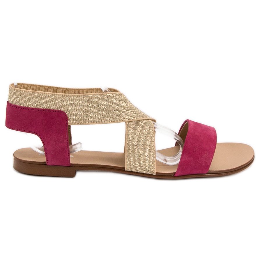 SHELOVET Elegant Flat Sandaler i nyanser av brunt och rosa är ett idealiskt förslag för kvinnor som värdesätter elegans och komfort. Dessa platta originalskor kombinerar moderiktig design med praktisk användning. Ett brett, elastiskt band som korsar mitten av foten ger utmärkt stöd, vilket säkerställer komfort vid varje steg. Dessutom ger två remmar av läder imiterad mocka i intensiv fuchsia dem en unik karaktär.