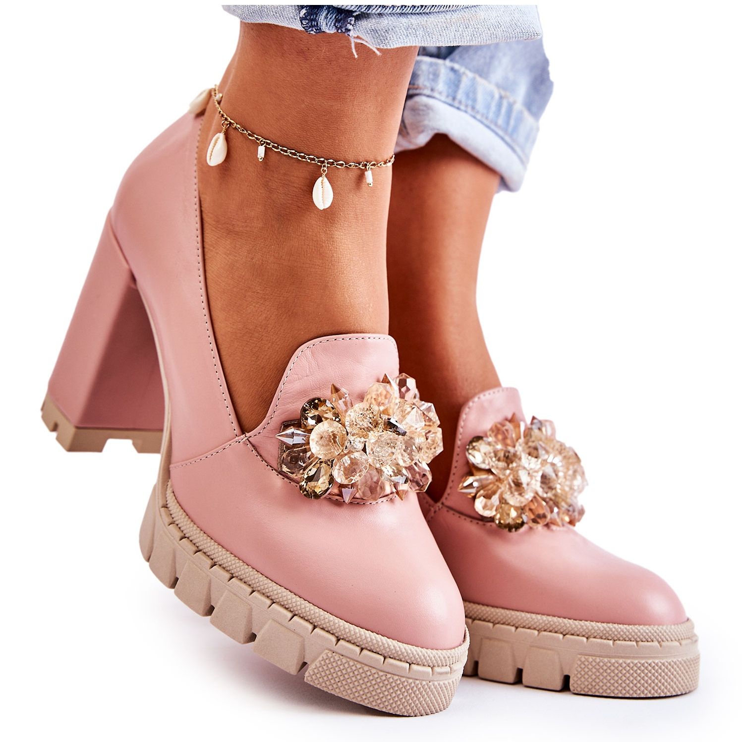 ### Eleganta PA2 pumps med dekoration - slät rosa och beige