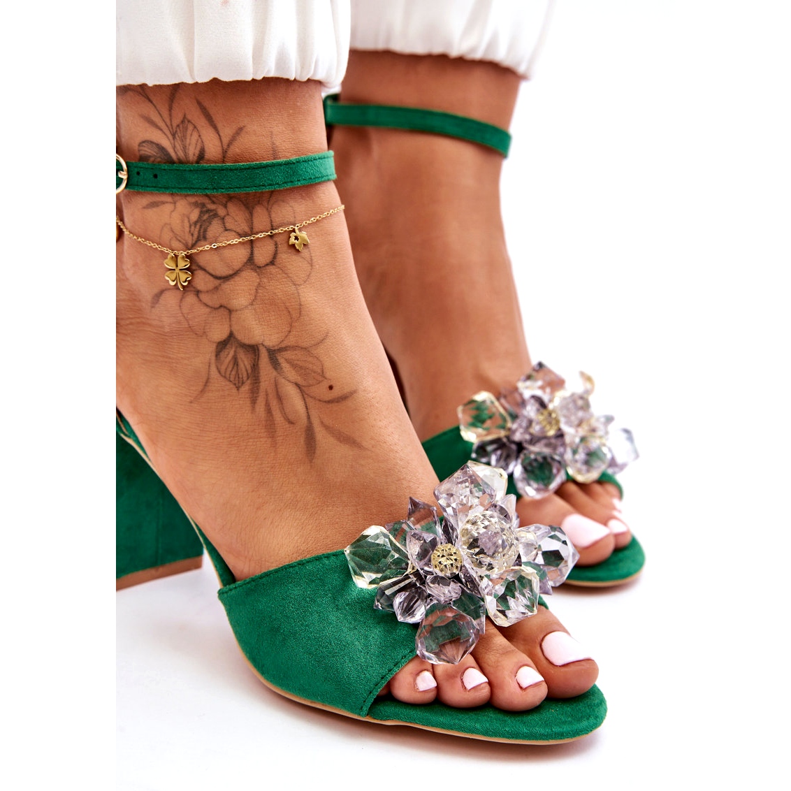 Detaljer: Seastar Eleganta sandaler med kristaller på Cameron gröna klackar