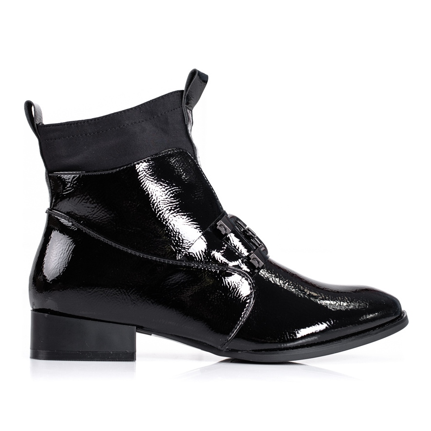 Information: Eleganta Shelovet-stövlar för kvinnor gjorda av lackerat ekologiskt läder svart