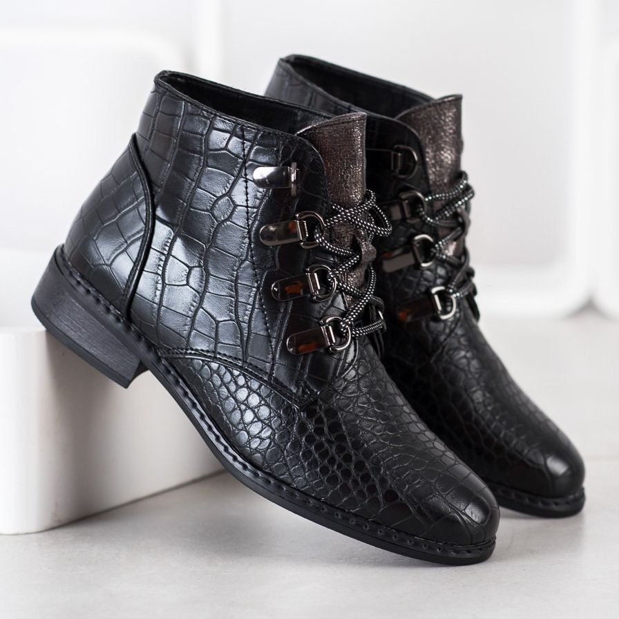 Upptäck elegans och komfort med Goodin boots, som njuter av sin kombination av klassisk stil och moderiktig stil. Dessa svarta ankelboots med snörning med en delikat silveraccent är ett perfekt val för moderna kvinnor som värdesätter stil och funktionalitet. Tillverkade av ekologiskt läder kombinerar de omsorg om miljön och hög kvalitet.