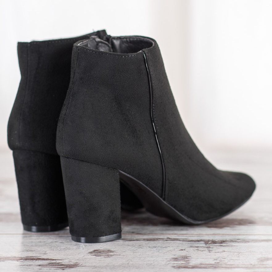Upptäck elegans och stil med Goodin ankelstövlar med spetsiga tå i svart. Dessa klassiska skor, gjorda av ekologiskt läder i mockaimitation, är det perfekta valet för varje kvinna som vill lägga chic till sin look. Den 8 cm höga blockhälen förlänger benen perfekt och framhäver den feminina siluetten, och den runda tån och den inbyggda, förstyvade hälen säkerställer exceptionell bärkomfort.