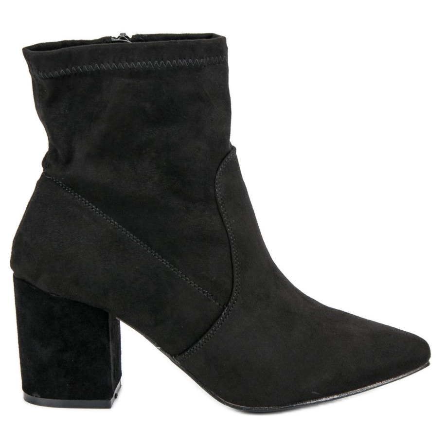 Upptäck elegans med högklackade ankelboots från Small Swan, som säkert kommer att bli en oumbärlig del av din garderob. Dessa snygga svarta ankelboots med 7,5 cm hög klack kombinerar klassisk med modern design, vilket gör dem till det perfekta valet för alla tillfällen - från vardagsstyling till kvällsutflykter.