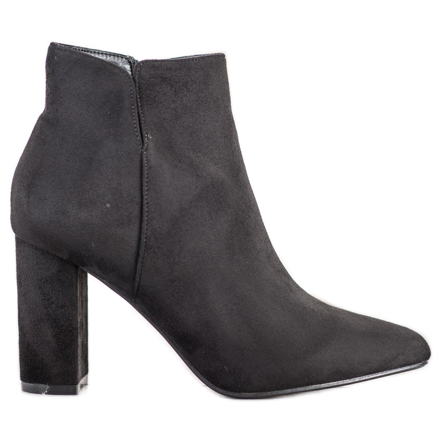 Stövlarna har en klassisk svart färg som passar vilken stil som helst, både avslappnad och elegant. Tillverkade av högkvalitativ mockaimitation, de ser inte bara bra ut, utan är också lätta att underhålla. Den övre höjden på 10-11 cm och den inbyggda, mjuka hälen säkerställer full bärkomfort, även under en lång dag. Tack vare den runda tån utsätts inte dina fötter för tryck, vilket gör dessa stövlar till ett utmärkt val för vardagsbruk.