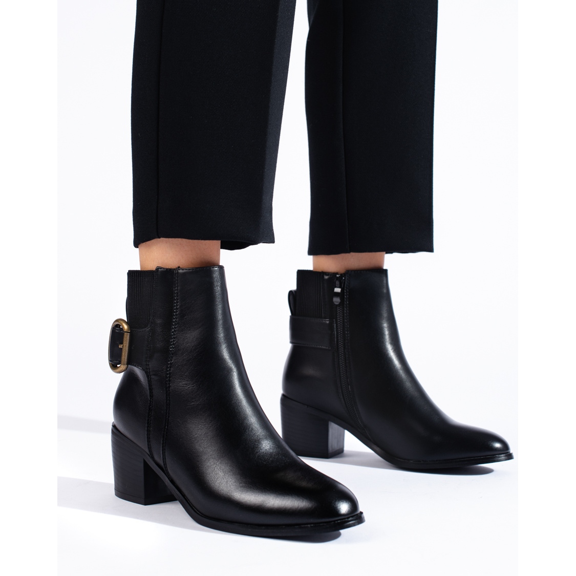 Tillverkade av högkvalitativt läderimitation ger SHELOVET ankelboots både hållbarhet och estetiskt utseende, samtidigt som de är ett miljövänligt val. En rund tå och en rejäl 6 cm hög klack garanterar stabilitet och gångkomfort hela dagen, oavsett situation.