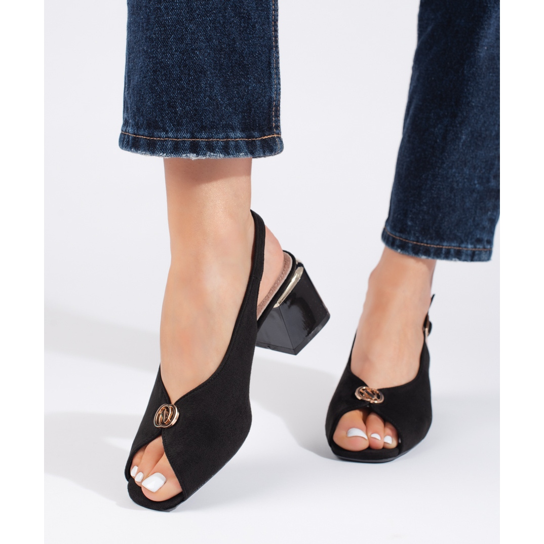 Detaljer: Eleganta svarta högklackade mockasandaler