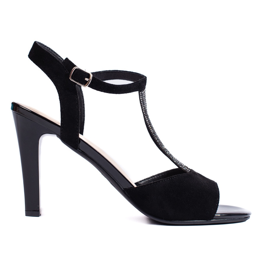 Detaljer: Eleganta svarta högklackade sandaler i mocka från Sergio Leone