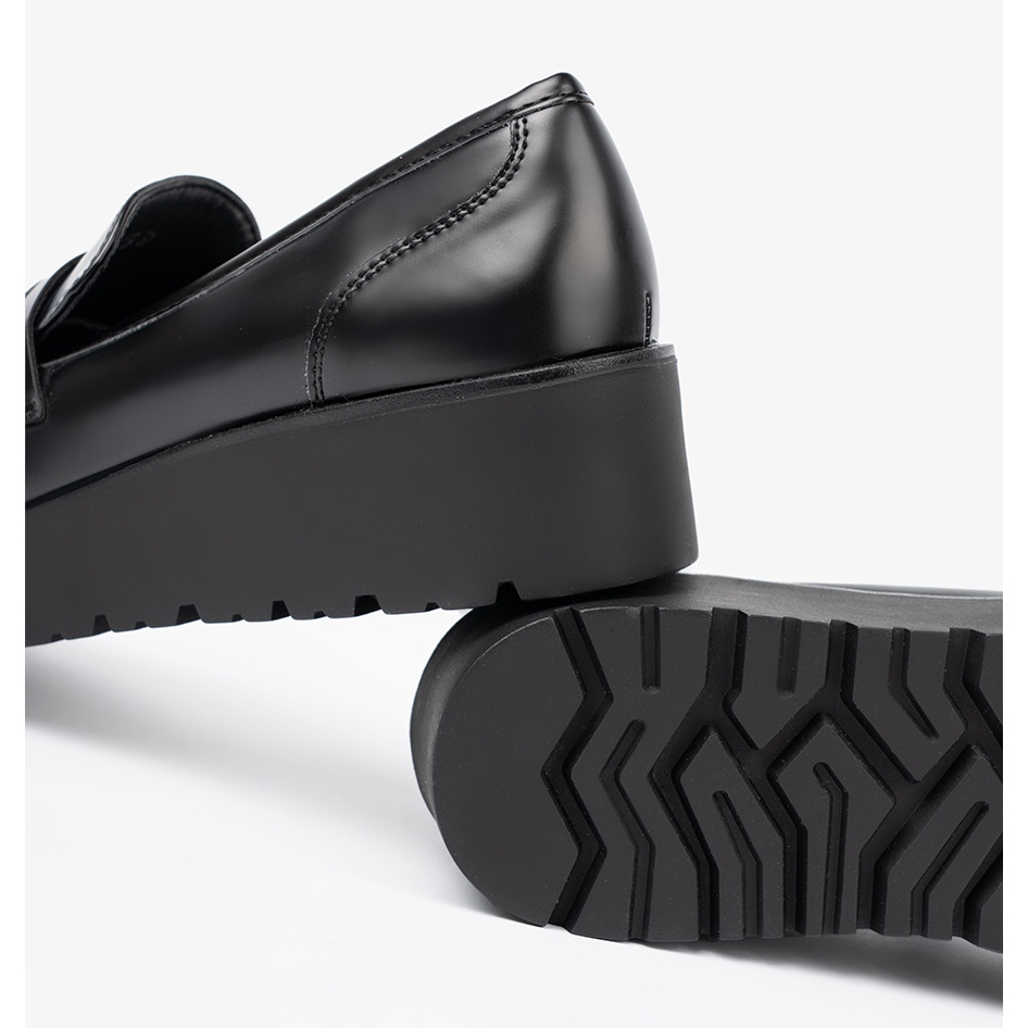 Detaljer: Shelvt Eleganta svarta loafers på en tjock sula