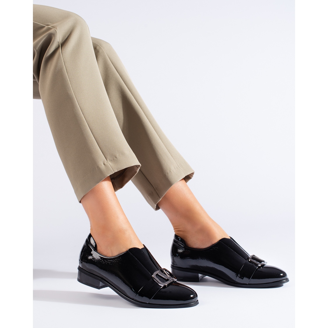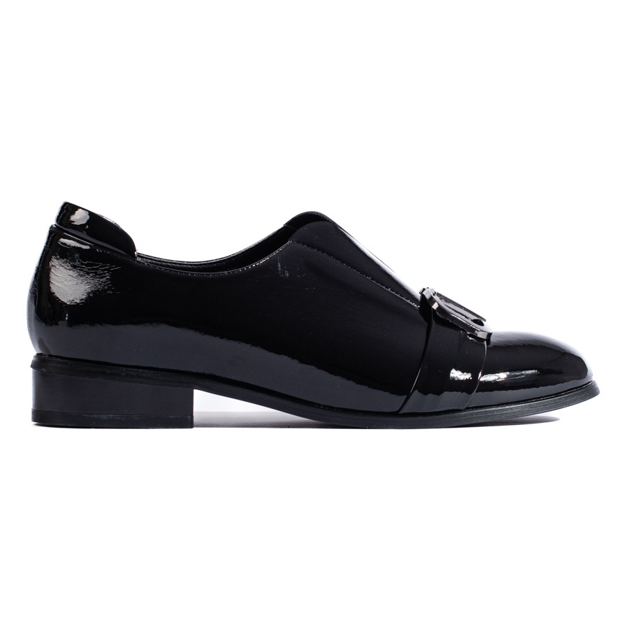 Eleganta svarta W. Potocki-skor är ett perfekt val för kvinnor som vill kombinera stil med komfort. Dessa underbara skor, gjorda av ekologiskt patentläder, utstrålar elegans och är det perfekta komplementet till många stilar. Tack vare den runda tån och styvade hälen är de bekväma att bära varje dag och vid speciella tillfällen.