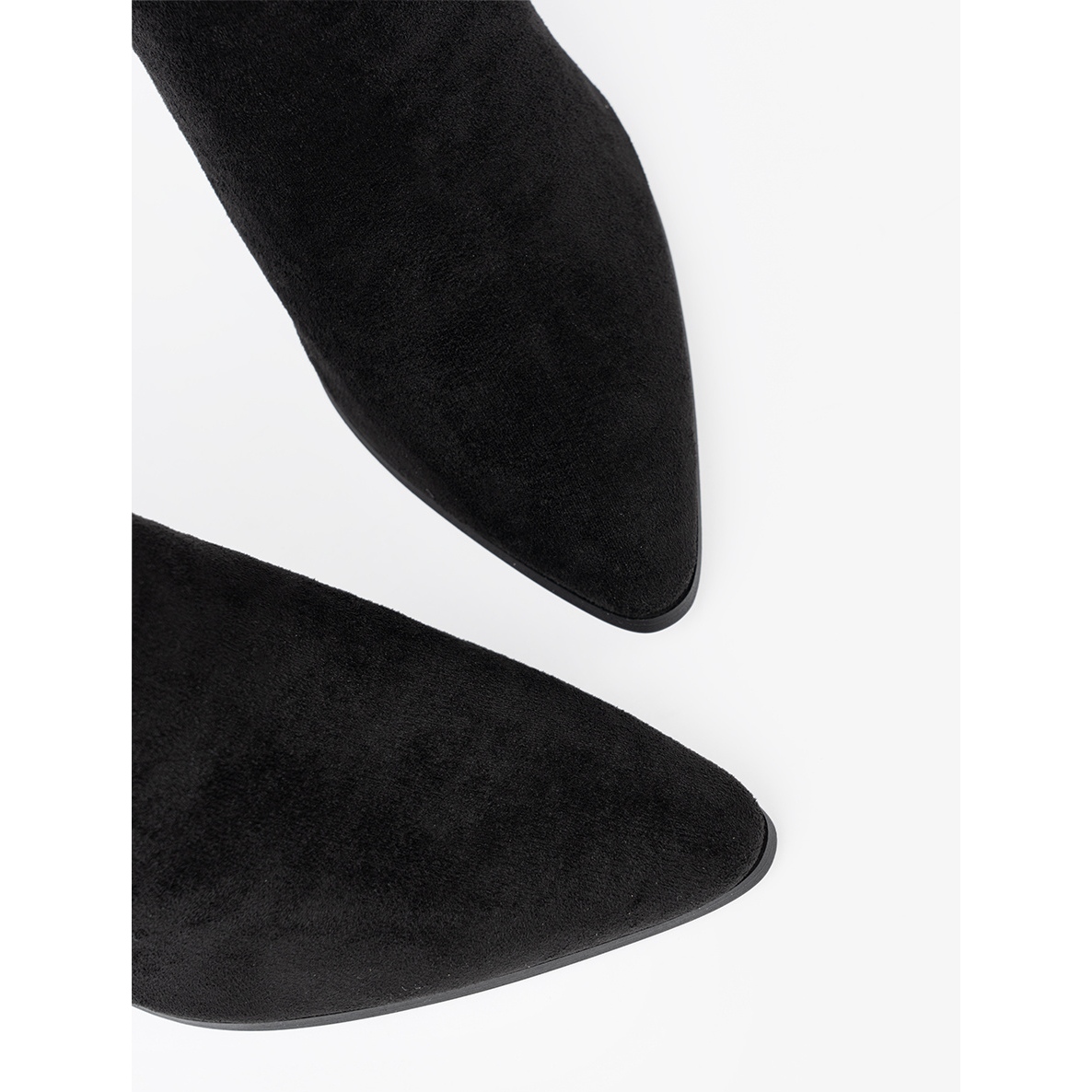 Eleganta svarta stövlar med en smycken accent från tillverkaren Shelvt är ett bra val för kvinnor som värderar stil och komfort. Dessa fashionabla svarta stövlar är perfekta varje dag, särskilt under hösten och vintern. Tillverkad av ekologisk mocka ger de inte bara estetiskt utseende, utan också komforten att bära tack vare uppvärmning och en textilinredning.