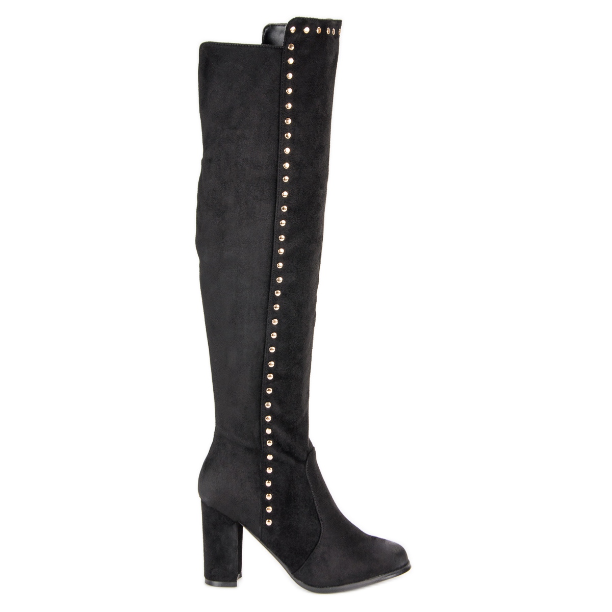 Detaljer: Eleganta VINCEZA mocka lårstövlar svart