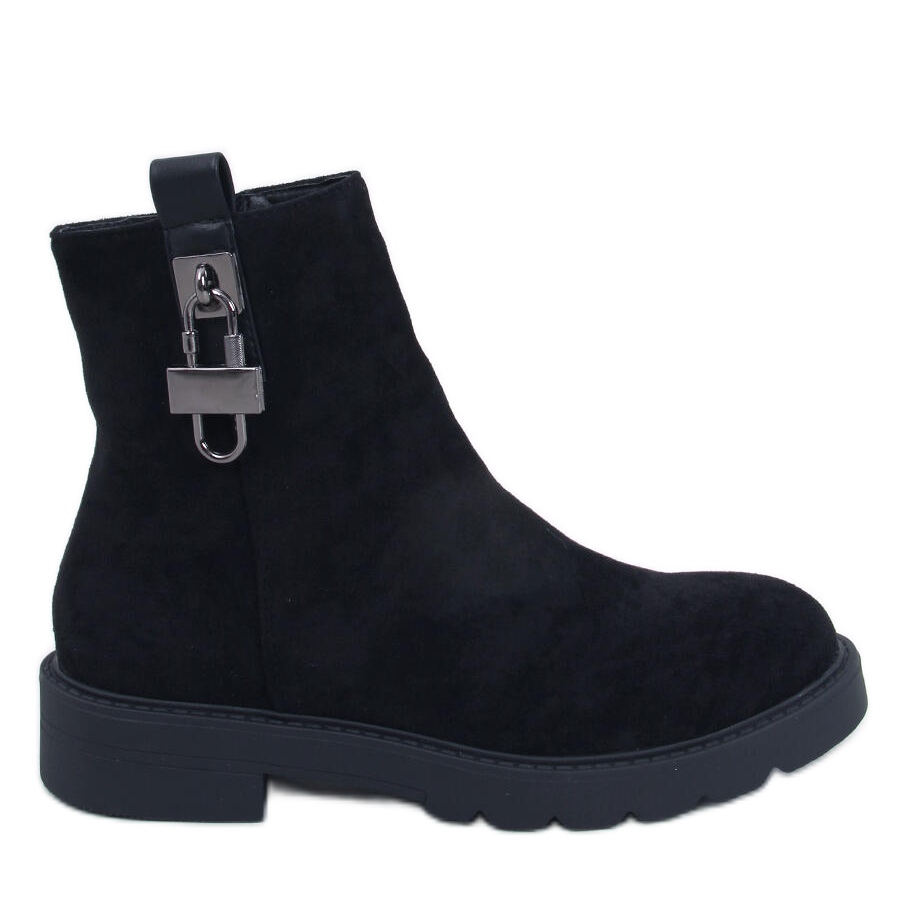 Emarco Black Women's Jodhpur Boots - Svart, mocka, på en tjock sula. Ett klassiskt, tidlöst snitt med en subtil dekoration i form av ett hänglås och känsliga strass. Praktisk blixtlåsfästning, skumfoder och uppvärmning gör det till det perfekta valet för svalare dagar.