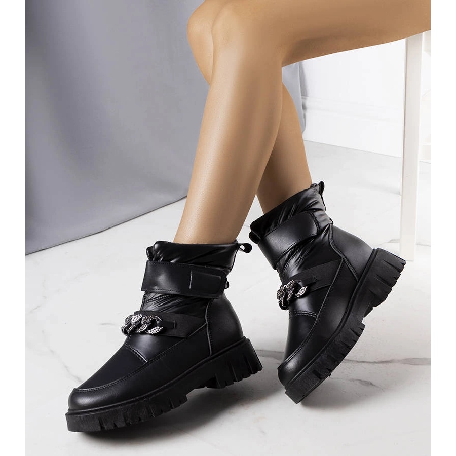 Elegant och praktisk - Efraim snöstövlar är det perfekta valet för svalare dagar. Den övre delen av högkvalitativt ekologiskt läder i kombination med hållbart material säkerställer komfort och hållbarhet, och den dekorativa kedjan lägger karaktären på all stilisering. Interiören är klar med varm päls, vilket garanterar värmeisolering och komfort även vid låga temperaturer.