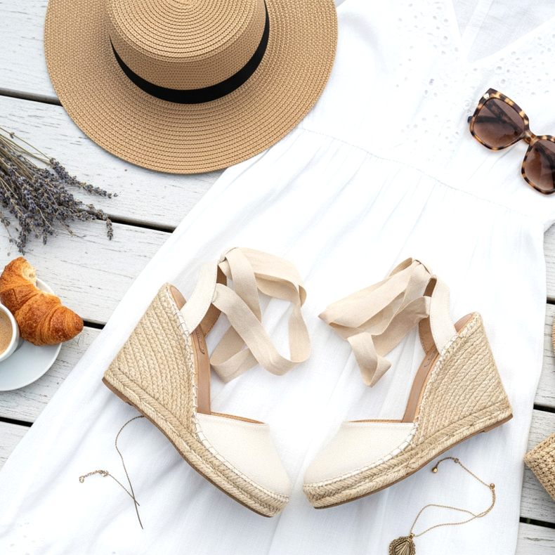 Wedge espadrilles är franska kvinnors favoritsommarskor. De är bekväma, stabila och matchar vilken klänning som helst. Vi visar dig hur du bär och knyter dem för att smala dina ben.