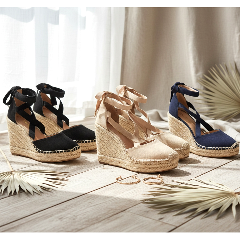 Nyckelelementet i dessa skor är en sula gjord av flätat snöre (jute) och ett knytband runt ankeln (ofta med ett band). Kilen ger stabilitet och komfort som tunna höga klackar saknar, och lägger samtidigt till några centimeters höjd och gör vaden smal. Dessa skor är perfekta för semesterpromenader, dejter och sommarfester.