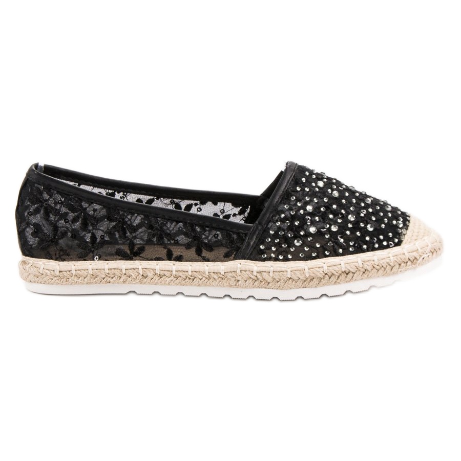 Detaljer: Ideal Shoes Espadriller med kristaller svart
