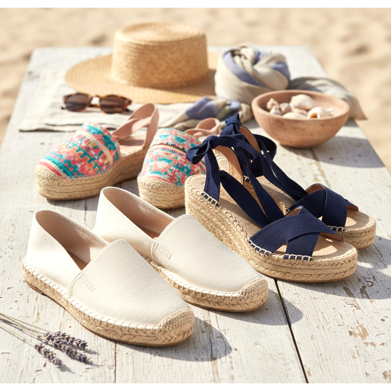 Vi älskar espadrillor för deras naturliga utseende, lätthet och semesterkaraktär. En jute- eller hampasula ger dem en unik textur som passar perfekt in i sommarstilar. Ovandelen i tyg ger andningsförmåga, så att dina fötter inte överhettas även under de varmaste dagarna.