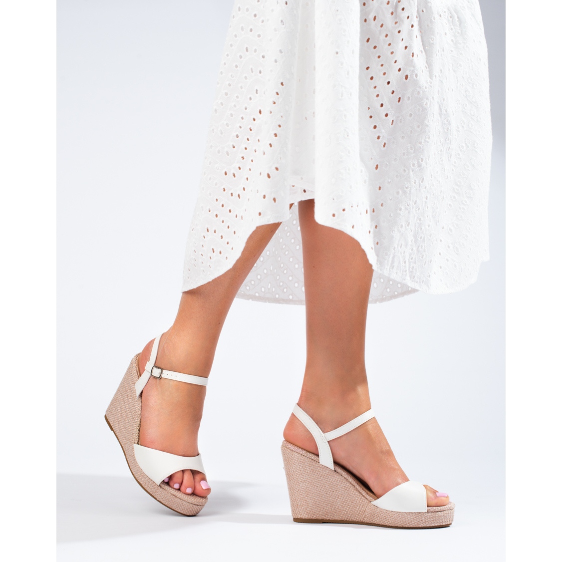 Shelovet espadrillor med hög kil i en elegant vit färg är ett perfekt val för kvinnor som vill kombinera komfort med en unik stil. Dessa sandaler med öppen klack är gjorda av 100 % läderimitation och är perfekta för en mängd olika tillfällen - från vardagliga utflykter till fester till fester.