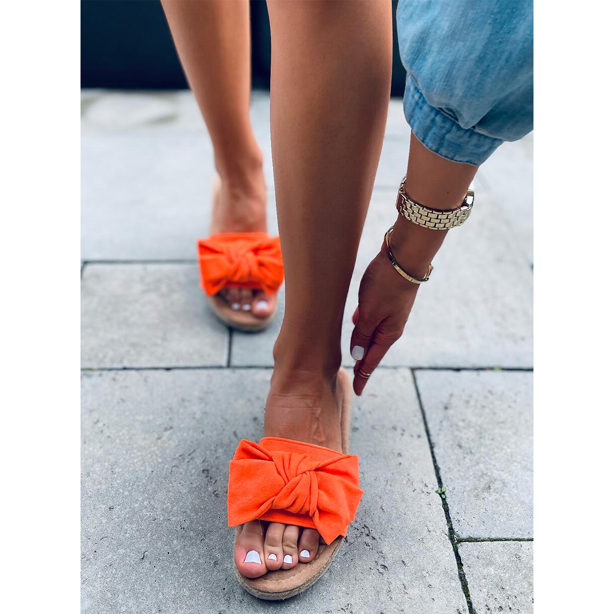 Detaljer: Espadrillor med Viola Orange rosett
