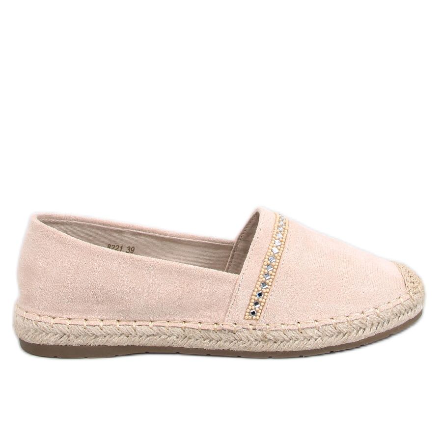 En funktion som skiljer denna modell är en subtil stenapplikation, vilket ger Espadrilles en unik karaktär. Tack vare det kommer de lätt att locka utseende och bli en effektiv accent i din sommargarderob. Den beige färgen på mocka, i kombination med en brun sula, får Espadrilles att smälta väl med många kläder - både strand och varje dag.