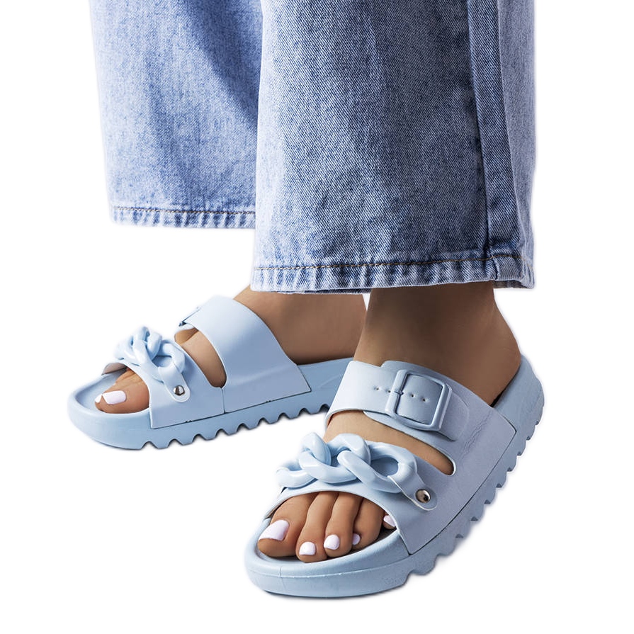 Sommarhit - Bekväma och eleganta flip flops som kommer att fungera i vardagliga, avslappnade stiliseringar. Tillverkad av gummi: flexibla remmar stabiliserar foten, är dekorerade med dekorativa spännen och en subtil kedja som tillför karaktär. Den höga, 2,5 cm gummisulan ger dämpning och fashionabelt utseende, och en slät, absorterad yta passar många kombinationer.