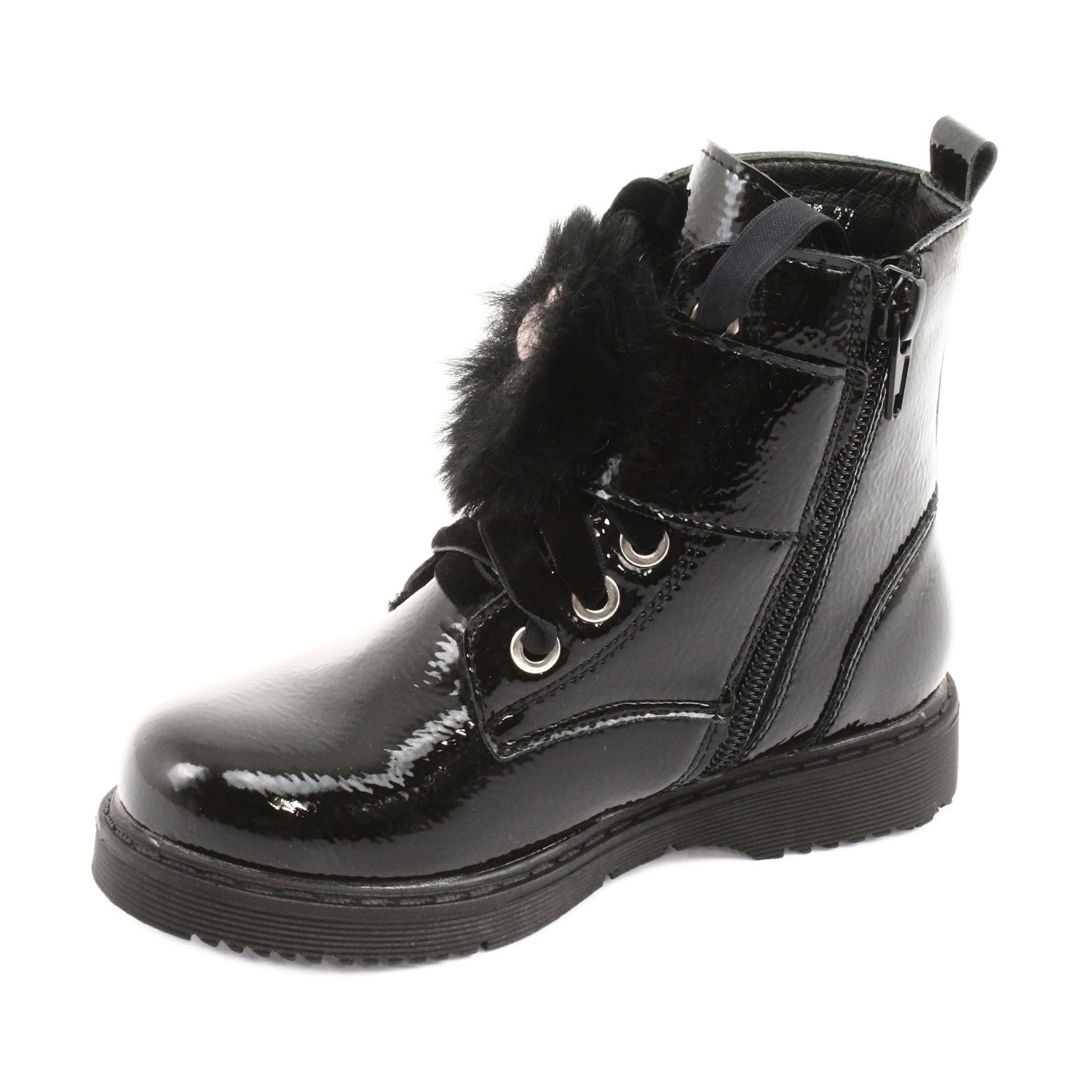 Modernt och snyggt - Evento 1438 svartlackade stövlar är de perfekta skorna för varje tjej som vill se moderiktig ut och känna sig speciell under kallare dagar. De ser unika ut tack vare glänsande ekologiskt läder med en patenterad finish, som garanterar glans och elegans vid varje steg.