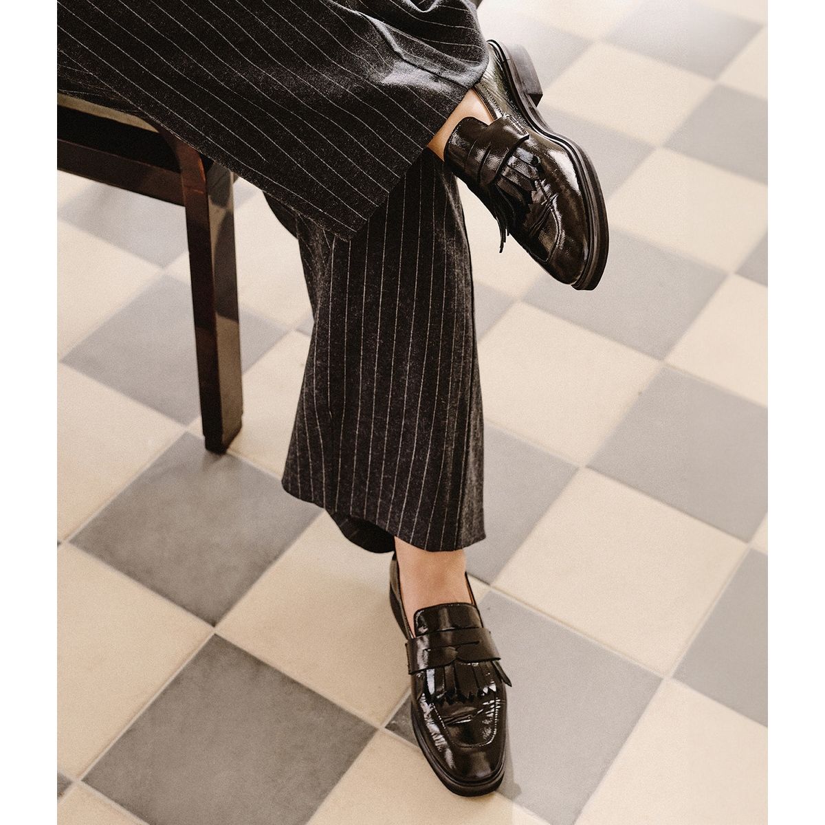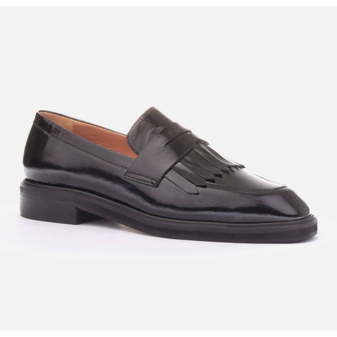 Kvaliteten som kan kännas vid första beröring är resultatet av valet av material i toppklass. Den yttre delen av skon är gjord av naturligt glansigt läder, vilket ger produkten en lyxig look och samtidigt garanterar hållbarhet och hållbarhet. Exakt finish av detaljer, såsom fransar och lackerad yta, gör Fallon loafers inte bara bekväma, utan också extremt visuellt attraktiva.