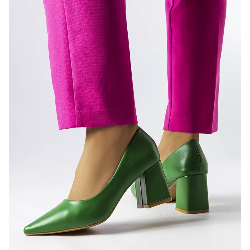 Upptäck elegans och komfort med gröna Fanchon-pumpar från märket BM. Dessa snygga skor med spetsiga tår är det perfekta komplementet till alla kvinnors garderob. Tack vare en enkel blockklack erbjuder de stabilitet och komfort, vilket gör dem till ett perfekt val för en mängd olika tillfällen - från vardagliga möten till kvällsutflykter.