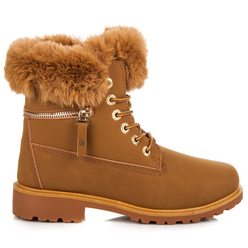 Här är de perfekta skorna för vinterdagar - bruna sneakers med päls på ovandelen, som kombinerar stil och komfort. Dessa ankelstövlar för kvinnor från ett välkänt märke njuter av både utseende och funktionalitet.