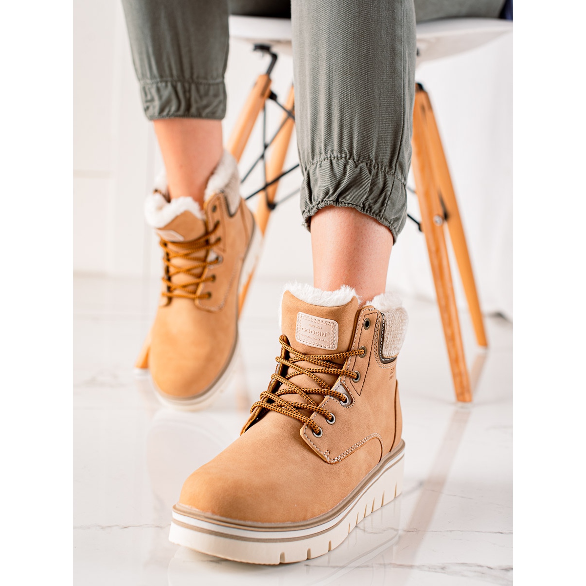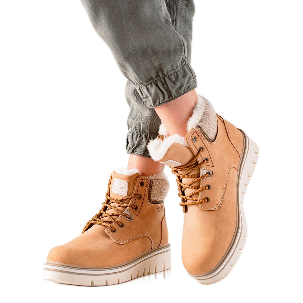 Goodin stövlar är snörda, vilket möjliggör enkel anpassning till vilken fot som helst, och deras övre bredd på 22 cm gör dem lämpliga för olika typer av ben. Dessa fashionabla ankelboots är ett bra komplement till vilken garderob som helst, lämpliga för både byxor och kjolar.