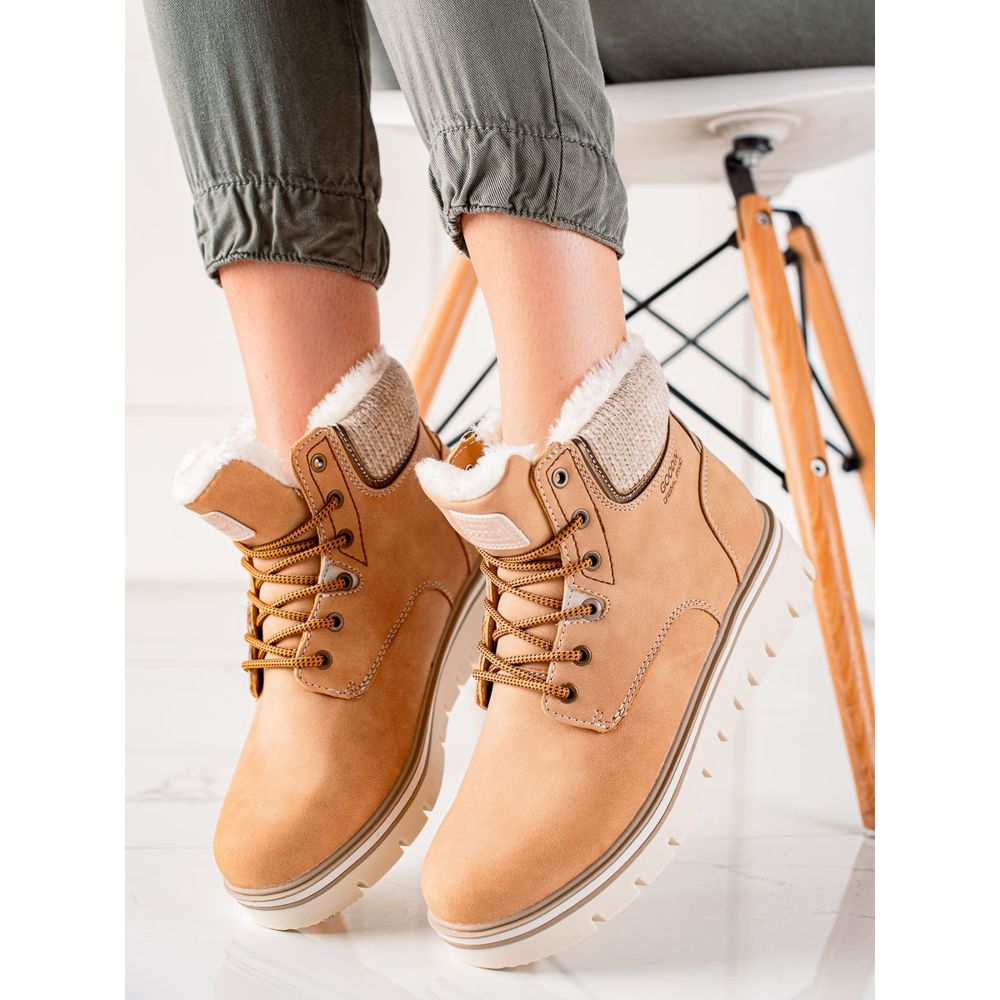 Tillverkade av ekologiskt läder av hög kvalitet, de ser exceptionellt attraktiva ut och är samtidigt miljövänliga. Stövlarnas insida är fyllda med mjukt textilmaterial, vilket säkerställer komforten att bära, och isoleringen gör att dina fötter förblir varma även under kallare dagar. En inbyggd, förstyvad häldisk och en rund tå ger inte bara komfort utan också stabilitet.