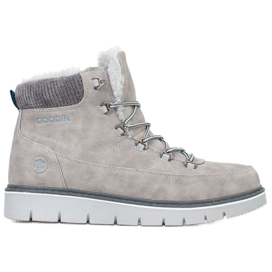 Goodin grå plattformsstövlar är det perfekta valet för kvinnor som värdesätter komfort och stil i ett. Dessa skor är gjorda av mocka och är ett utmärkt val för veganer och vegetarianer. De erbjuder inte bara ett attraktivt utseende, utan också komfort att bära tack vare en mjuk, rundad ovandel som når över ankeln.