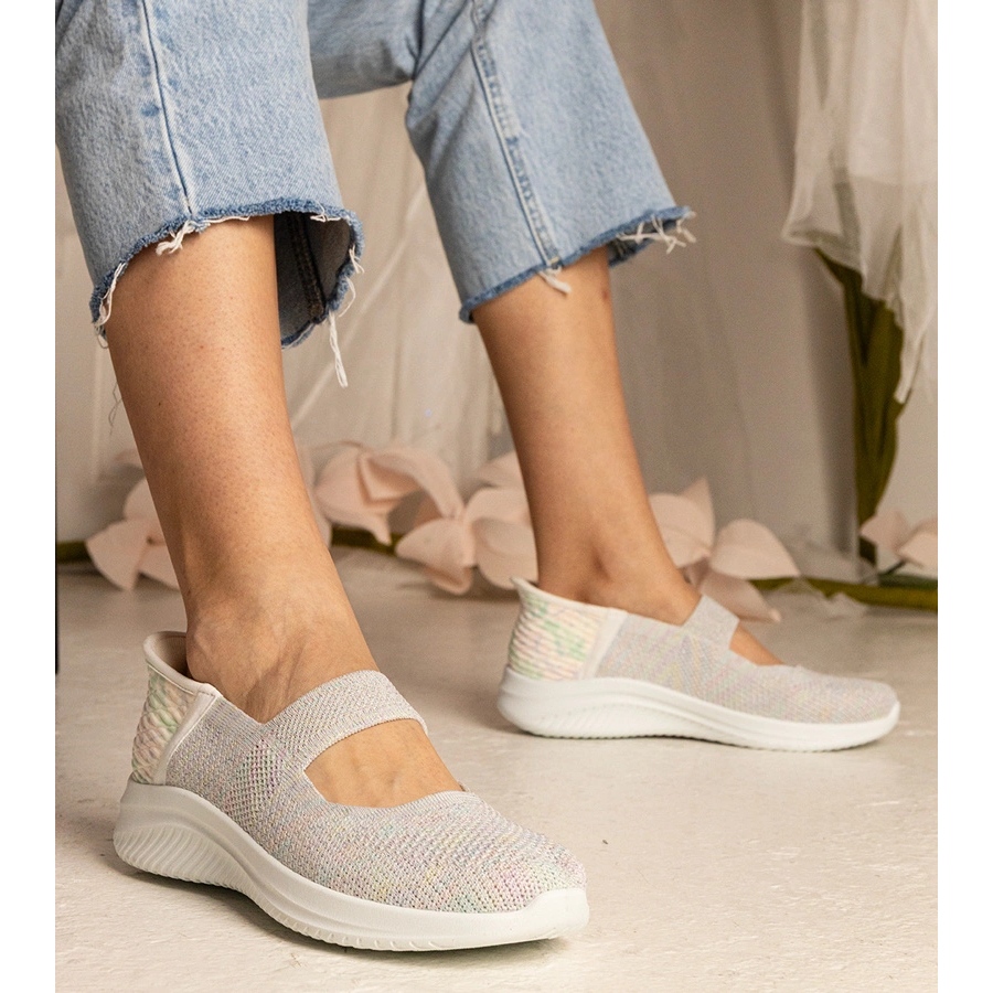 Höjdhöjden 3,5 cm i kombination med en lätt, vit plastsula ger inte bara ett snyggt utseende, utan också komfort och stabilitet när man går. Det mjuka tyget som används i det yttre materialet och på insatsen kommer att ta hand om dina fötter och ge dem tröst under dagen.