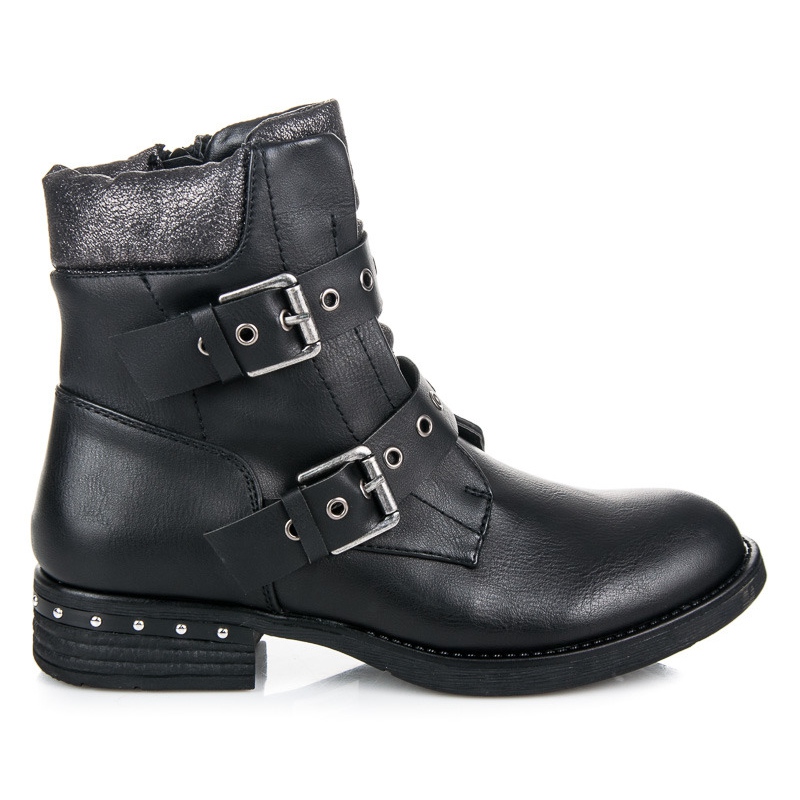 Tillverkade av ekologiskt läder av hög kvalitet, arbetarna kännetecknas av dekorativa spännen och subtila kristaller som ger dem originalitet. Ovandeln, 14 cm hög och 22 cm bred, passar effektivt på benet och ger stöd och komfort på samma gång. En rund tå och en inbyggd, förstyvad häl garanterar bekvämt att bära, och en platt 3 cm hög klack gör dem perfekta för vardagsbruk.