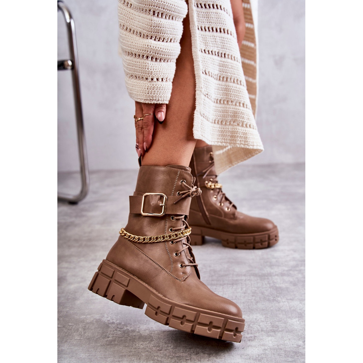 - Modell: Fashionabla Arbetarskor Med Kedja