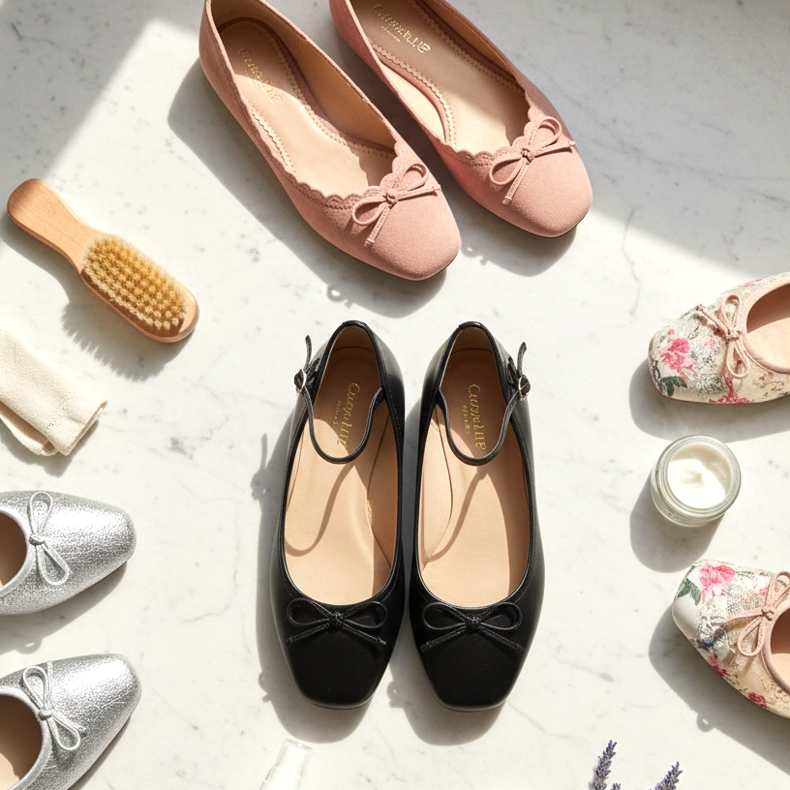 Skötseln är enkel: regelbunden rengöring, skötsel av lädret med en kräm eller mocka med lämplig borste och applicering av vattentätningsmedel inför varje säsong. Förvara balettlägenheter på skoträd eller stoppa dem med tyg för att behålla formen. Besök KeeShoes för att se de senaste balettlägenheterna för våren 2026 - du kommer garanterat att älska något.