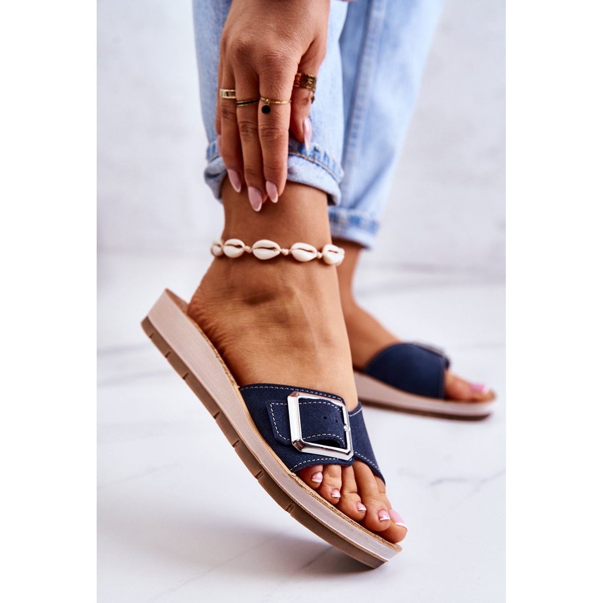 Detaljer: Fashionabla damtofflor med spänne Inblu CP000031 Marinblå