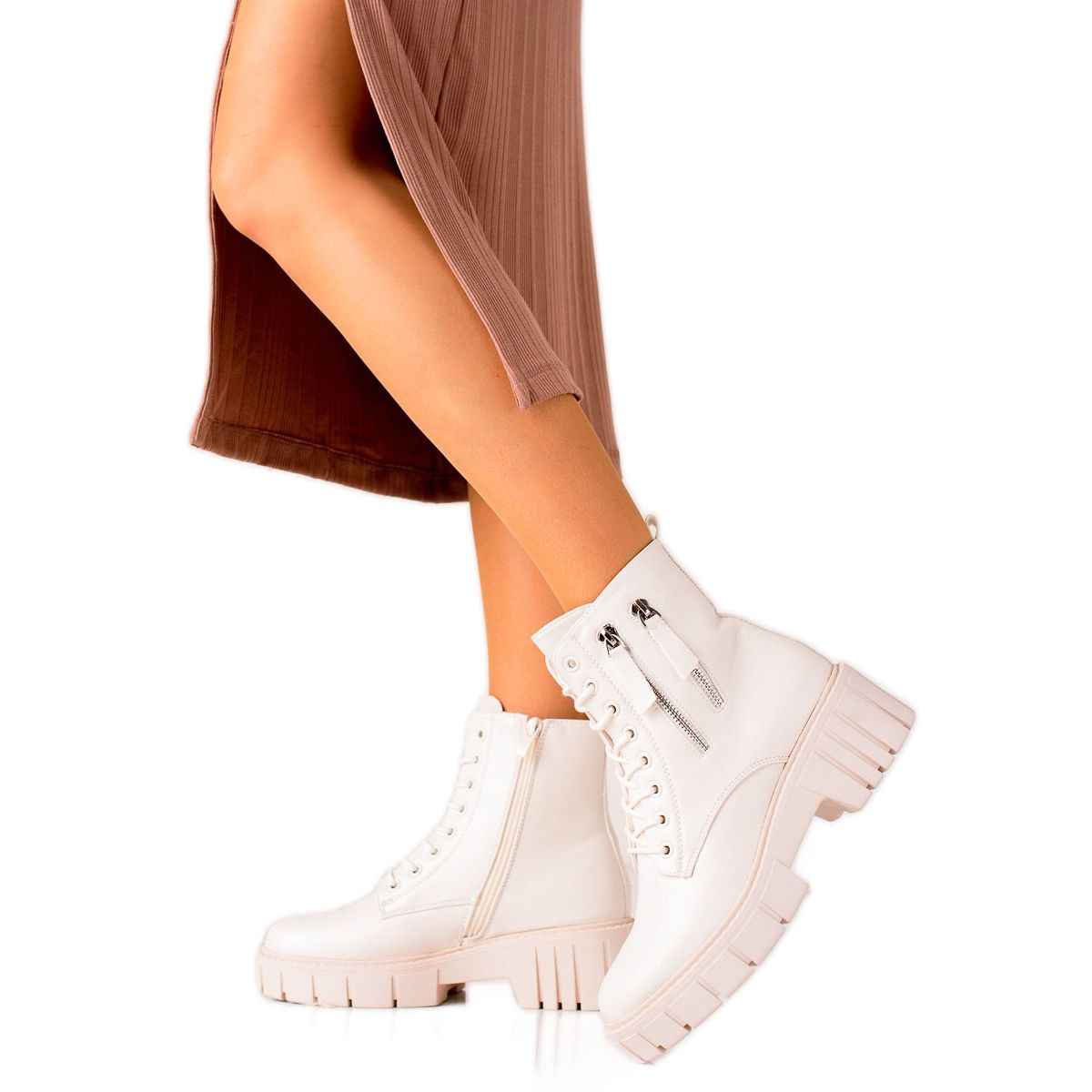 Skornas ovansida är gjord av ekologiskt läder, vilket gör dem inte bara snygga, utan också miljövänliga. En ytterligare fördel är dekorativa dragkedjor som ger dem en moderiktig karaktär. Stövlarnas insida är fyllda med textilmaterial, och innersulan är gjord av ett annat bekvämt material, vilket ökar bärkomforten.